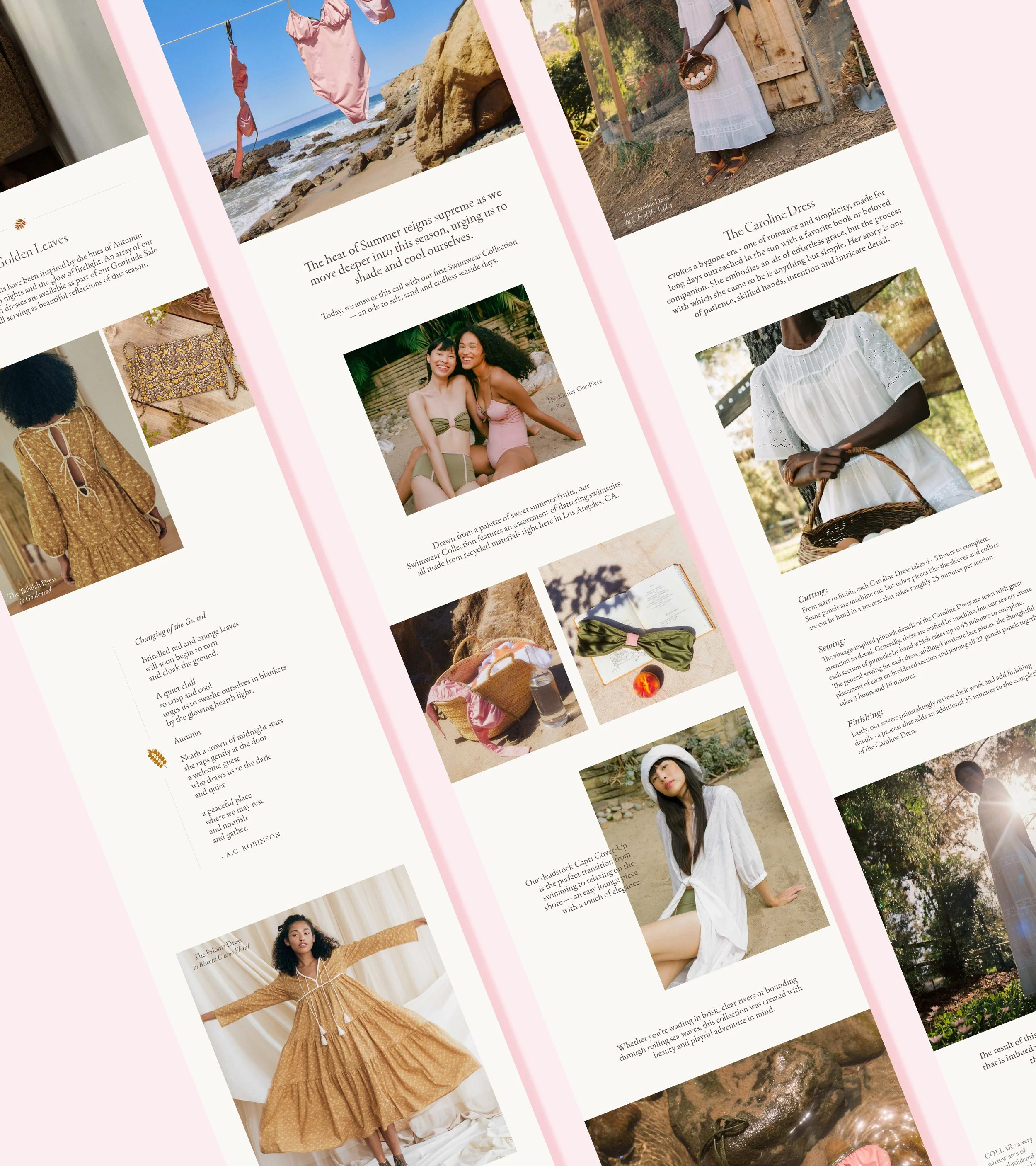 With existing brand assets and hand-written notes, I designed a press release for Christy Dawn’s new regenerative cotton collection. It tells the story and significance of working with a farm in India to grow the cotton while increasing biodiversity and drawing carbon back into the soil. The brief then takes you through the key styles in the collection, sharing fabric and detail information for each.